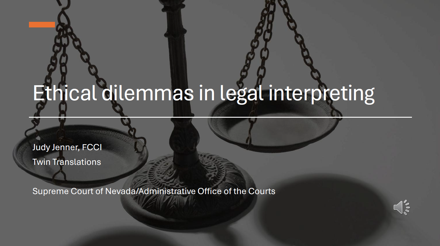 Training Description: Court interpreters play a critical role in ensuring justice and due process within the legal system. But what happens when they encounter situations that push the boundaries of ethics, impartiality, or professional conduct? In this webinar, we’ll examine real-world ethical dilemmas court interpreters may face in their day-to-day work. Through practical scenarios, you'll gain deeper insight into how to navigate complex situations while upholding the highest standards of the profession.